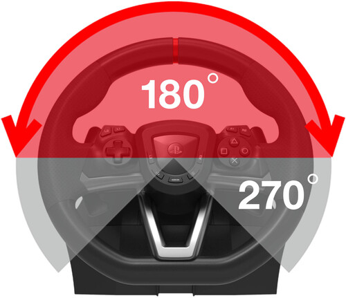 HORI brings the best in build-quality, customization options, and authentic racing simulation with the Racing Wheel APEX for the PlayStation 5 and PlayStation 4. HORI's design team has brought all the features and quality of a full-size racing wheel at an affordable price. Massive 270 degree turn-ratio - Completely programmable & adjustable -PS5, PS4 & PC compatible. The Racing Wheel APEX clamps securely to your table or racing wheel stand with sturdy clamps and steel parts (suction cups not included). The full-size pedals are built to last. Change from 270 degree to 180 degree turn ratio on the fly and fine tune other settings such as dead zone, pedal sensitivity and more. Cross the finish line with the all new RWA: Racing Wheel APEX for PlayStation 5, PlayStation 4 and PC. Officially licensed by Sony.