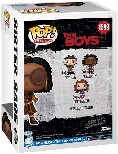 When superheroes are developed and managed by Vought International, who will keep them in check? The Boys are vigilantes fighting to expose the corruption and falsehoods of the Seven and their formidable Vought backing. Bring home Pop! Sister Sage to be a hero, or perhaps a villain, in your The Boys collection. Vinyl figure is approximately 4-inches tall.