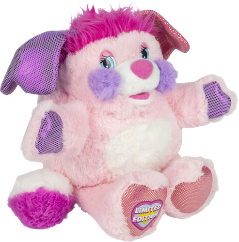 Inspired by the classic 80s brand, this Limited Edition Popple, one of the most beloved members of the Popples crew, PARTY—features bright, bold colors, sparkling textured hearts on the feet, and its signature ability to “pop” inside out and back again! With a quick flip, it converts from a cuddly character into a soft, fuzzy ball—just like you remember!