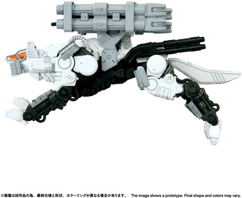 A 1/100 scale action plastic model series that enhances “super articulation,” “ease of assembly,” and “collectibility.” By pursuing the user's perspective—not just in part count, sense of scale, design, and structure—it embodies every ideal. A specially designed articulation system allows full-body movement, enabling various action poses unique to wolf-type Zoids, such as roaring and sprinting. The weapons mounted throughout the body are movable, allowing various battle scenes from the anime to be recreated.