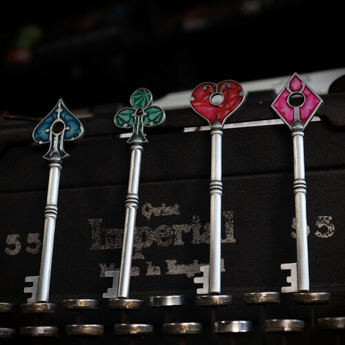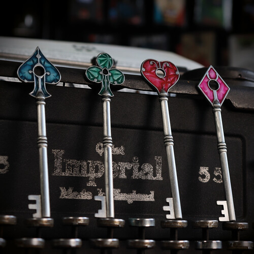 Each key stands at 100 mm tall and features intricately detailed enamel colouring on the head of the key creating a faithful recreation of the classic Heart, Diamond, Club, and Spade designs.