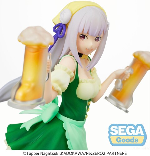 Emilia dons a themed dress to deliver giant frosty mugs of beer in this 8.1" non-scale figure from SEGA.