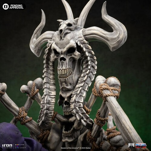 Firmly holding his Havoc Staff in his right hand, he gazes with hollow eyes, resting his skeletal chin on his left hand, lost in malevolent thoughts that would terrify even his most dangerous followers. Iron Studios proudly presents the "Skeletor on Throne - MOTU - Prime Scale 1/3" statue, a luxurious edition rich in details inspired by original references from the classic Filmation animated series, and the first statue from the Masters of the Universe franchise in the Prime Scale 1/3 line by Iron Studios. Figure details: The statue was designed with extreme attention and care, based on the official references, ensures an impressive display of the figure in any environment.