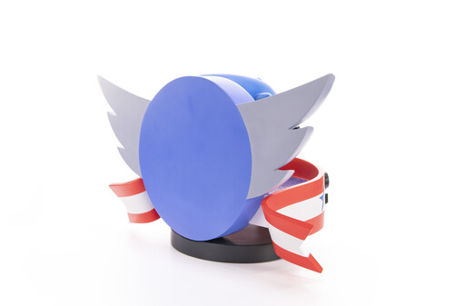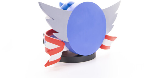 The statue is inspired by the iconic title screen from Sonic The Hedgehog. It perfectly captures every detail, from Sonic’s signature smirk and finger pointed confidently upward to the winged emblem and Sonic The Hedgehog title banner.