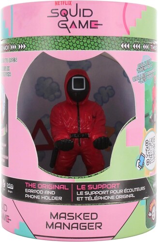 Immerse yourself in the dramatic aesthetic of Squid Game, combining practicality with the captivating style of the hit series. This collectible 4.5 inch mini figure is intricately designed to securely cradle your phone or earbuds, adding a burst of personality to your tech setup. With its unique paint-dipped design, the Squid Games Masked Manager Holdem effortlessly combines practicality with visual appeal, promising to elevate your set-up with a touch of artistic charm. Collect all four Squid Game Holdems!