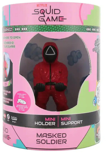 Immerse yourself in the dramatic aesthetic of Squid Game, combining practicality with the captivating style of the hit series. This collectible 4.5 inch mini figure is intricately designed to securely cradle your phone or earbuds, adding a burst of personality to your tech setup. With its unique paint-dipped design, the Squid Games Masked Manager Holdem effortlessly combines practicality with visual appeal, promising to elevate your set-up with a touch of artistic charm. Collect all four Squid Game Holdems!