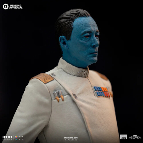 With his piercing red eyes and composed, strategic stance, Grand Admiral Thrawn surveys the battlefield with unmatched tactical brilliance. Clad in his pristine white Imperial uniform, he stands atop a stylized base inspired by the galactic conflict of the Star Wars universe. Iron Studios presents the "Grand Admiral Thrawn – Star Wars: Ahsoka Series – Art Scale 1/10" statue, capturing the legendary tactician’s cunning and authority in a collectible format.