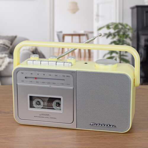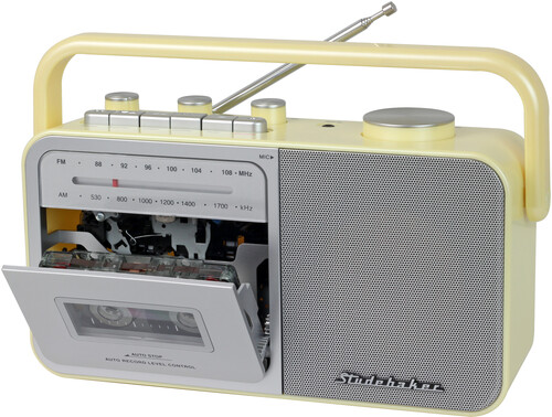 The Studebaker SB2130 Cassette Player/Recorder with AM/FM radio is a retro portable with classic styling and easy to use features. This unit features cassette recording from the radio, mic (built-in condenser mic) and aux-in jack. The speaker delivers excellent sound with clear and static-free audio.