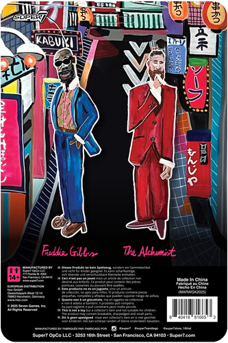 Looking fresh to death in colorful suits, each figure comes with an accessory essential for bringing their underground dealings to life—Freddie Gibbs comes armed with a sword to handle any business that gets out of line, while The Alchemist comes with a bottle of wine, perfect for sealing deals or knocking a little sense into any wiseguys.