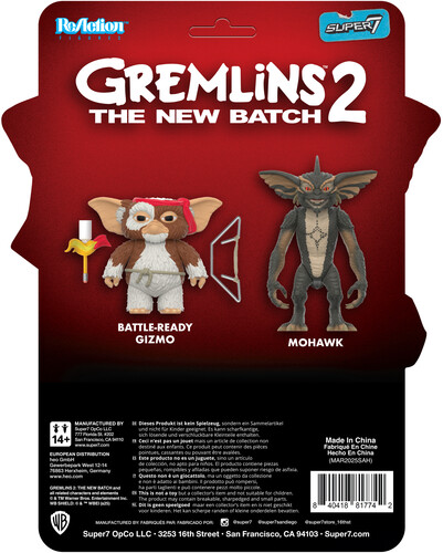 Gizmo’s battle-ready as a ReAction Figure, based on the 1990 film Gremlins 2: The New Batch. This 3.75” scale, articulated figure comes with the bow and arrow accessory inspired by the movie. And, he’s packaged on a blistered cardback “character card” with refreshed, full-color and detailed original artwork.