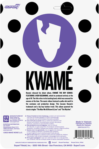 The latest 3.75” scale, articulated Kwamé ReAction Figure is inspired by his iconic polka dot look from his music video, “The Rhythm”, includes a microphone accessory, and comes packaged on a die cut cardback.