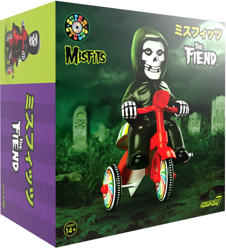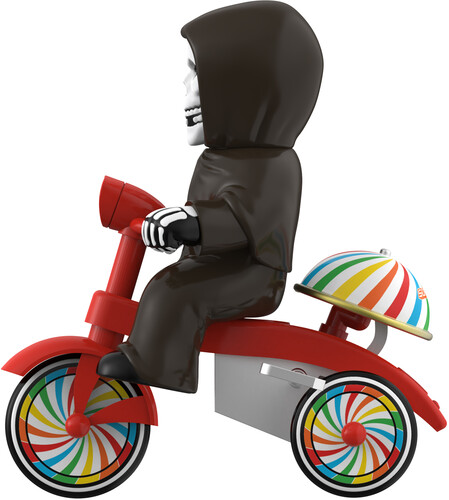 Inspired by the vintage-style plastic and tin wind-up tricycle toys, this frightening 5” Misfits Super Cycle features a soft vinyl Fiend in the driver’s seat of a slick red trike, looking ready to do a few donuts on a neighbor’s front lawn, featuring colorful wheels and a functioning bell above the back tire!