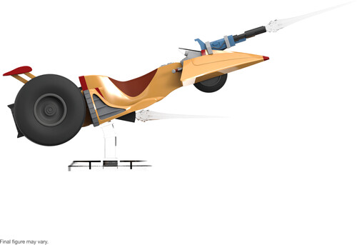 Featuring intricate sculpt and premium paint detailing, this vehicle also comes with an assortment of accessories including a detachable blaster, a pair of blaster effects, and a display stand!