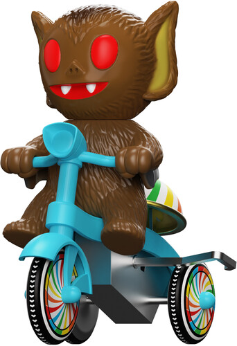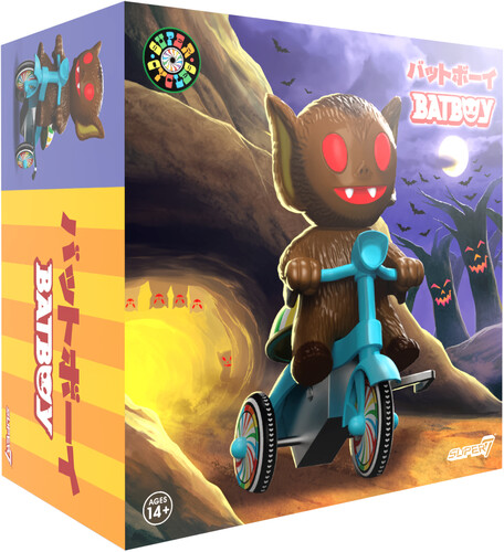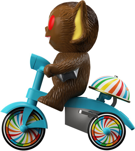 Inspired by the vintage-style plastic and tin wind-up tricycle toys and featuring an original character design from Super7’s Brian Flynn, this whimsical 5”, Super Cycle features an earthy-brown, soft vinyl Bat Boy in the driver’s seat of a blue trike with colorful wheels, ready to zip down shadowy trails and over moonlit hills to deliver messages between creatures of the night.