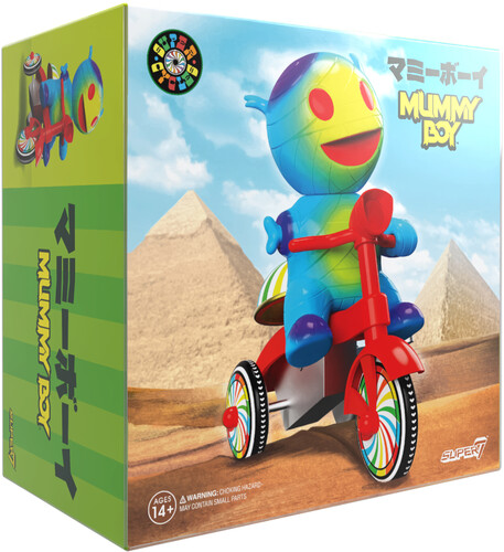 Inspired by the vintage-style plastic and tin wind-up tricycle toys, the latest whimsical 5”, Super7 Super Cycle features a soft vinyl Mummy Boy in the driver’s seat, in a special blue colorway reminiscent of a limited-edition 2008 Japanese Vinyl Mummy Boy figure.
