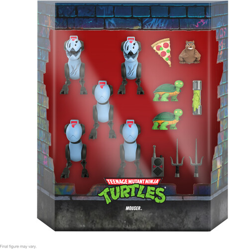 This Teenage Mutant Ninja Turtles ULTIMATES! Mousers 5-Pack includes three clean Mousers and two battle-damaged Mousers each standing just over 3” tall, all with Foot Clan logo detail, along with a plethora of highly detailed accessories.