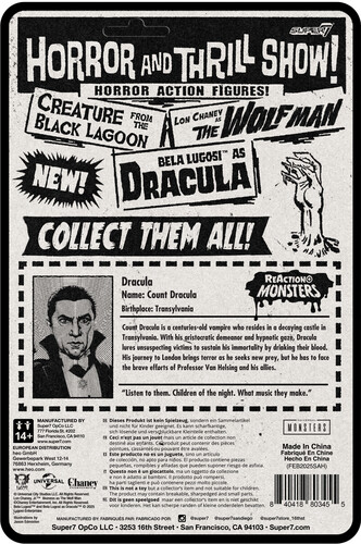 The children of the night are calling, so hurry to keep this Dracula ReAction+ Figure safe in your collection. He might also be eternally grateful if you introduced him to the other members of your Universal Monsters set.