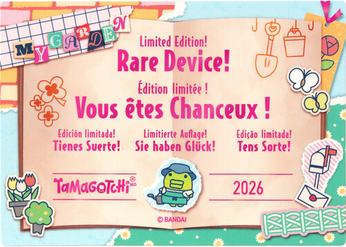 The shell has a My Garden design and comes with a certificate to verify the authenticity of its rare release. With original programming, you feed your character, clean up after it, take care of it and even discipline it if it's bothering you when it doesn't need you! Plus, you can play the Character game! How you take care of your Tamagotchi character and how you do in the game determines which Adult Tamagotchi character you'll get! Includes the CR2032 battery and attaches to your bag so it goes everywhere! Ages 8+