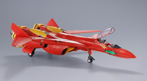 VF-19 Kai Excalibur, the Fire Valkyrie piloted by Basara Nekki. For the DX CHOGOKIN version, a new gimmick has been added that allows the cover parts that were left over after transformation to be stored. In addition to the two open and closed versions, a singing face part with original DX CHOGOKIN specifications is included. The shoulder speaker unit also features a linking gimmick.