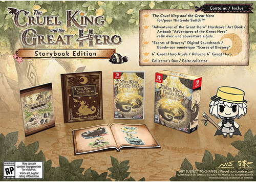 - Storybook Edition includes The Cruel King and the Great Hero game, “Adventures of the Great Hero” Hardcover Art Book, “Scores of Bravery” Digital Soundtrack (downloadable voucher), 6” Great Hero Plush, and Collector’s Box