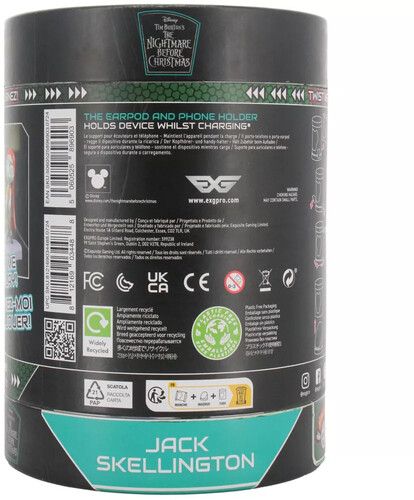 This collectible mini figure is meticulously crafted to securely cradle your phone or earbuds, infusing a touch of personality into your tech setup. With its iconic Jack Skellington design, this Holdem effortlessly combines functionality with visual appeal, promising to elevate your setup with a dash of Halloween magic. Perfect for keeping your earbuds, phone, and other small gadgets organized. Officially licensed by Disney, styled on Jack Skellington from The Nightmare Before Christmas franchise. Approx 4" tall. A great gift for all those gadget lovers. Ear buds not included.