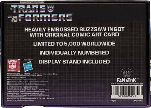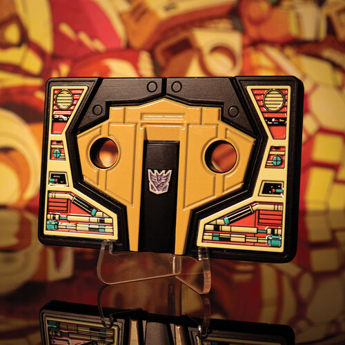 Finished with vibrant enamel retro colouring on its face and striking dark black plating on the reverse, this throwback-fuelled Transformers replica is a faithful slice of 80’s nostalgia and comes with a special art card.