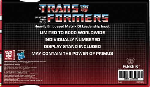 This replica has an edition size of 5,000 worldwide, and to ensure each is unique, has its own individual number found on the reverse. Whether displayed as the crown jewel of your collection or held in your hands like a true Prime, the Matrix is the perfect addition for any fan of the Cybertronian saga.