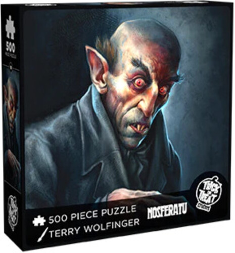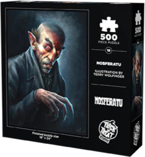 Embrace the shadows with this 500-piece Nosferatu jigsaw puzzle, illustrated by master artist Terry Wolfinger! A beautifully grim homage to the count.