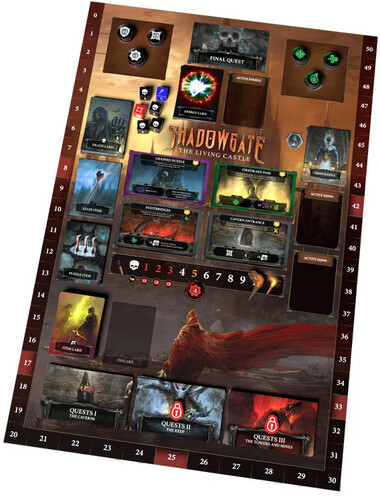 Shadowgate The Living Castle is a 2-4 player board game based on the Macventure, Kemco NES and 2014 remake video game, Shadowgate. In it you'll explore Shadowgate, the Living Castle, discovering relics and spells and completing legendary quests.