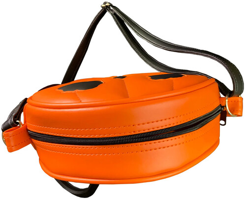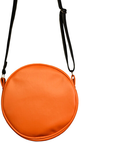 This beautiful purse, made using the highest quality vegan leather for excellent durability, has a soft black and orange stripped inner lining with a large center pocket, two side pockets, an adjustable strap and of course the front bitten window.
