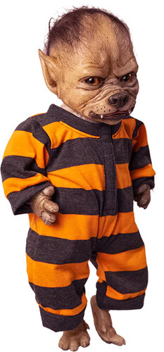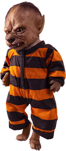 Cooper is the size and weight of a new born with added spooky charm! He features a solid silicone head, arms and legs attached to a weighted plush furry body, giving the look and feel of holding a real live baby werewolf!