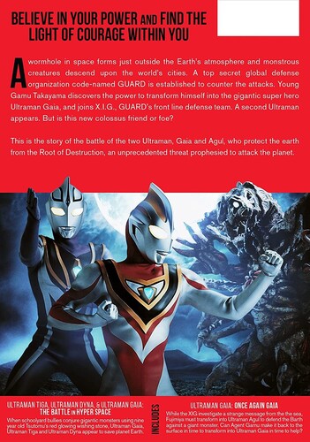 A wormhole in space forms just outside the Earth's atmosphere and monstrous creatures descend upon the world's cities. A top-secret global defense organization code-named GUARD is established to counter the attacks. Young GAM TAKAYAMA discovers the power to transform himself into the gigantic superhero ULTRAMAN GAIA, and joins X.I.G., GUARD's front line defense team. A second Ultraman appears. But is this new colossus friend or foe?