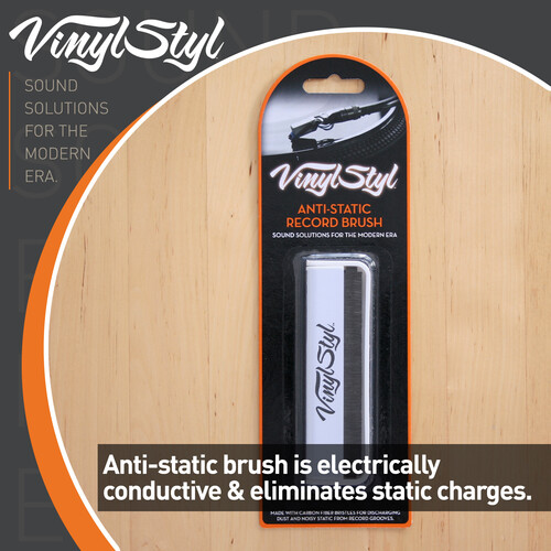 Anti-static — Our record brush is truly electrically conductive, eliminating static charges which attract dust and particles.
