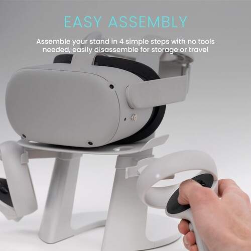 - Display Stand - Proudly show off your Meta Quest 2 headset & controllers, a headset rest securely displays your headset without contacting the lenses