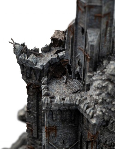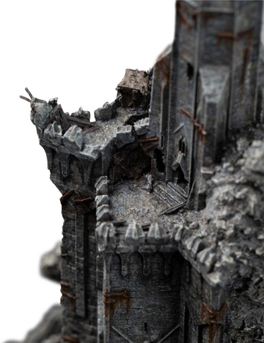 An ancient tower, reclaimed by shadow; reimagined by masters. Every brick, every crooked beam, every jagged parapet has been sculpted with the same level of artistry, worldbuilding, and reverence that defined the physical sets of the films. This collectible draws directly from the designs created for the screen, capturing the tension, texture, and mood of one of Middle-earth’s most haunting locations.