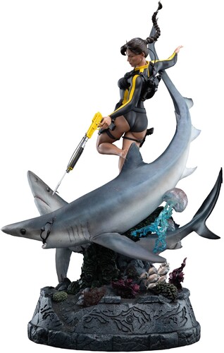 Crafted with the utmost skill and reverence, Lara Croft: Quest for Avalon is a breathtaking 1:4 scale tribute to one of gaming’s most enduring icons. Sculpted in exquisite detail, this collectible captures Lara as she appears in Tomb Raider: Underworld, fully outfitted in her wetsuit and diving gear, harpoon gun in hand, surrounded by the swirling tension of the deep.