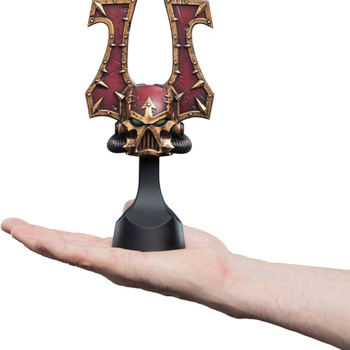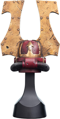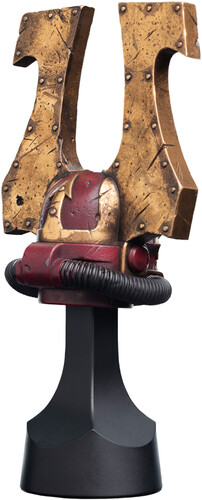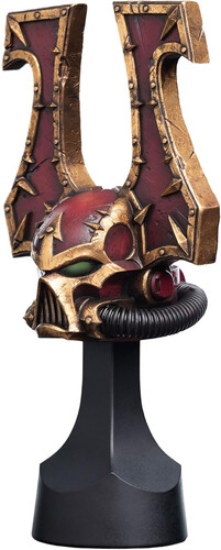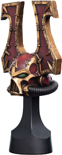 This replica captures the savage beauty of the helmet, from the deep crimson hues to the towering brass-trimmed crests. Crafted with precision and passion, this piece will incite the bloodlust in any Warhammer 40,000 fan, offering a perfect blend of artistry and brutality for your display.