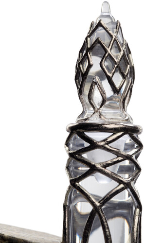 Knowing the peril that awaits Frodo on his journey, Galadriel assures him that her gift will be a light in dark places, when all others go out. Bound with silver and small enough to fit within the palm of one’s hand, the phial contains within it the water of Galadriel’s fountain, in which is caught the light of Eärendil, the Elves’ most beloved star.