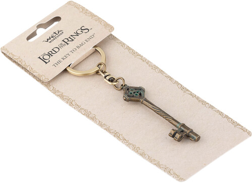 Designed by the artists at Wētā Workshop who worked on The Lord of the Rings, The Key to Bag End is available both as a keyring and a 1:1 scale prop replica. Made from a metal alloy with a chromed metal swivel keyring chain and split ring.
