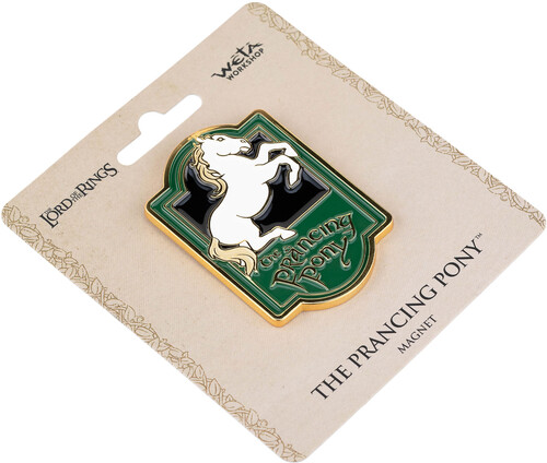 - Inspired by the beloved inn of Bree, this enamelled metal magnet captures the rustic charm and welcoming spirit of the Prancing Pony.
