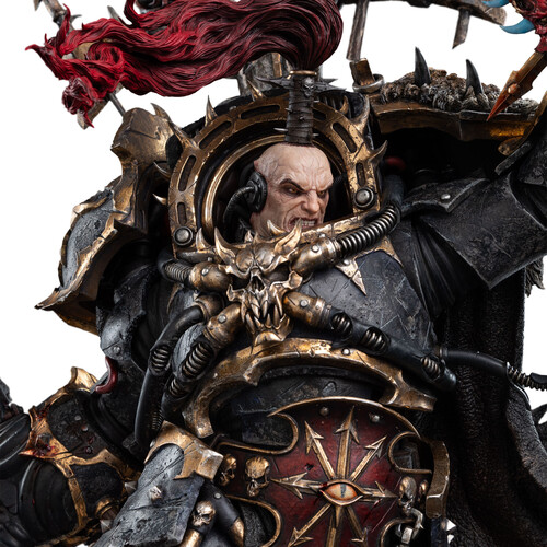 This hyper-detailed rendition captures the essence of Abaddon’s sinister grandeur, meticulously crafted by our team of expert artists and sculptors. From the intricately textured surfaces of his baroque Terminator Armor to the malevolent gleam in his eyes, every aspect of Abaddon has been sculpted with painstaking attention to detail.