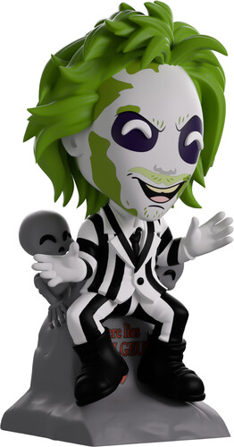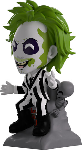 Beetlejuice, Beetlejuice, Beetlejuice! And with that, we’ve summoned the ghost with the most to Youtooz for his diabolical debut! At 4.7 inches tall and sitting atop a grey tombstone that has a pair of skeletons crawling out from the top, a sly smile crosses his dirty, stained face as an eyebrow raises playfully over purple-shaded eyes.