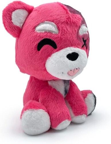 Sitting at 9 inches, this bright pink bear has it's tongue peeking out slightly from it's mouth. A mlem, if you will. The left side of this bear a little torched, while the right side looks regular. It's left eye is an embroidered "X" while the right eye is the signature Youtooz eye. It's left ear is non-existent, as it seems it has been burned off.