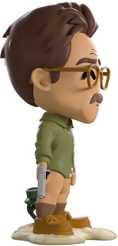 Walt's back and wearing his best tighty whities! Standing 5 inches tall in a patch of sand with his legs exposed, on the ground next to him is a gas mask lays a discarded gas mask as he holds a gun in his right hand. With a defeated look on his face and wearing brown glasses, his green shirt is buttoned up with it half tucked into his undies.