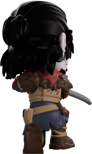 Takeo Masaki has arrived at Youtooz to show us exactly what honour is with his Youtooz debut! Crouching at 4.2 inches tall and holding the tip of his katana forward with bent arms as he readies to thrust it into the next zombie that gets in his way, long black hair is pulled into a messy bun at the back of his head as blue veins cover his pale face, and furrowed brows rest over shadowed eyes.