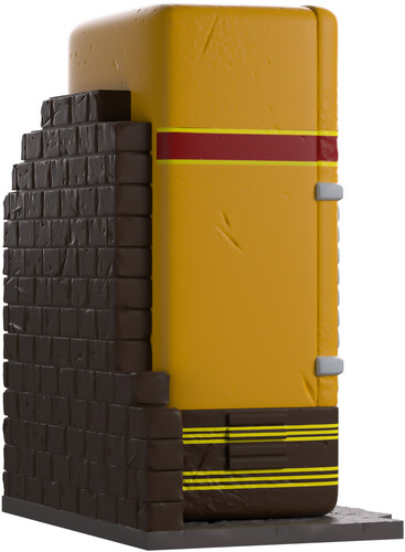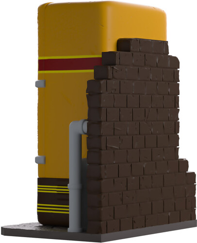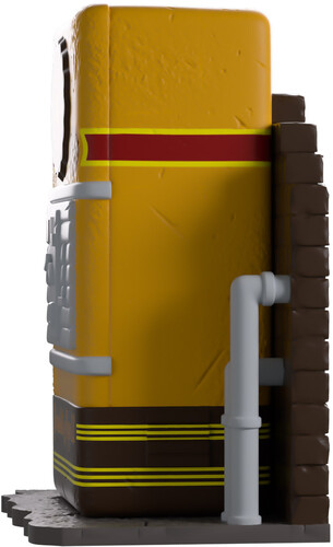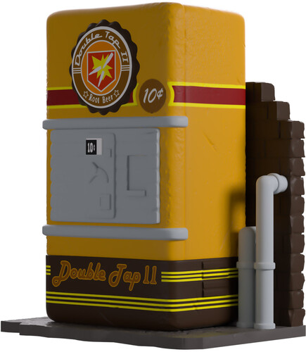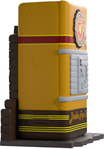 Need to speed up that trigger finger? Well Youtooz has the perfect perk for you! At 3.8 inches tall and sitting against a dark brick wall with a pair of grey pipes running down its side, its rectangular yellow body has rounded corners and a round sign on the front.