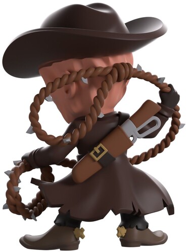 You can run, but there’s no way you’re gonna escape! The Ghoul has tracked Youtooz across the wasteland for his new figure! Standing at 4.2 inches tall and spinning a dark brown lasso that’s covered in shards of glass over his shoulder as he holds onto its end in a looped bundle, sunken eyes look out from his withered, gaunt face underneath the wide brim of his brown hat.