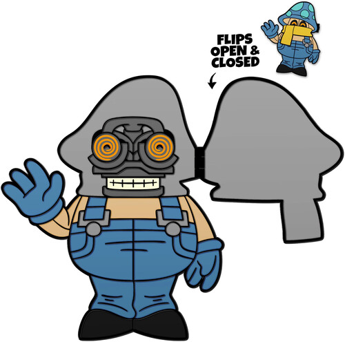 At 2 inches tall with a shiny, high-quality finish, this pin sees a jolly Mycellium Man waving their hand and dressed in blue overalls that match their spotted head, along with a yellow scarf wrapping around their face.