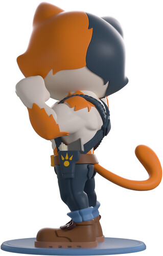 Meowscles has been beefing up to carry you to victory with their Youtooz debut! Standing at 5 inches tall and flexing his massive biceps as he tilts his head down to tenderly kiss one in adoration, pointed ears poke out from the top of his blue, orange and cream calico head that matches an absolutely ripped bare torso. With a dark blue harness wrapping over his shoulders to cross at the back as a pair of pistols rest in the holsters at his hips, he wears tight blue pants and sturdy brown boots as a long orange tail sweeps out from his back.