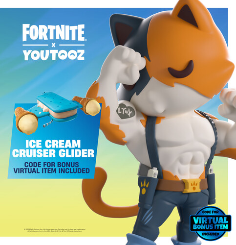Each Meowscles Youtooz includes an in-game content code for an Ice Cream Cruiser Glider. A redemption code card will be included in the box behind the figure and will be redeemable at https://www.fortnite.com/redeem.